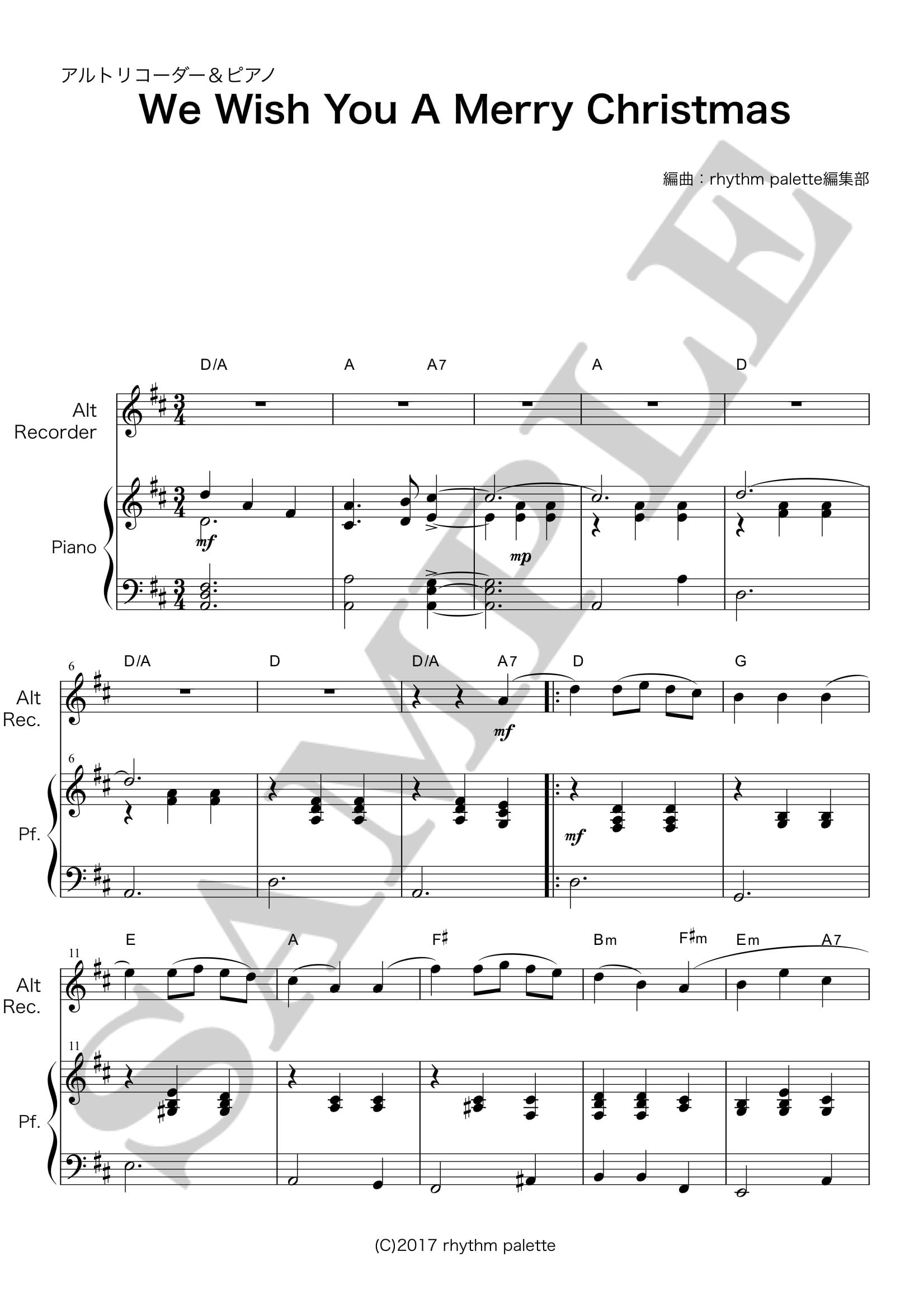 クリスマスソングWe Wish You A Merry Christmasのアルトリコーダー譜です。