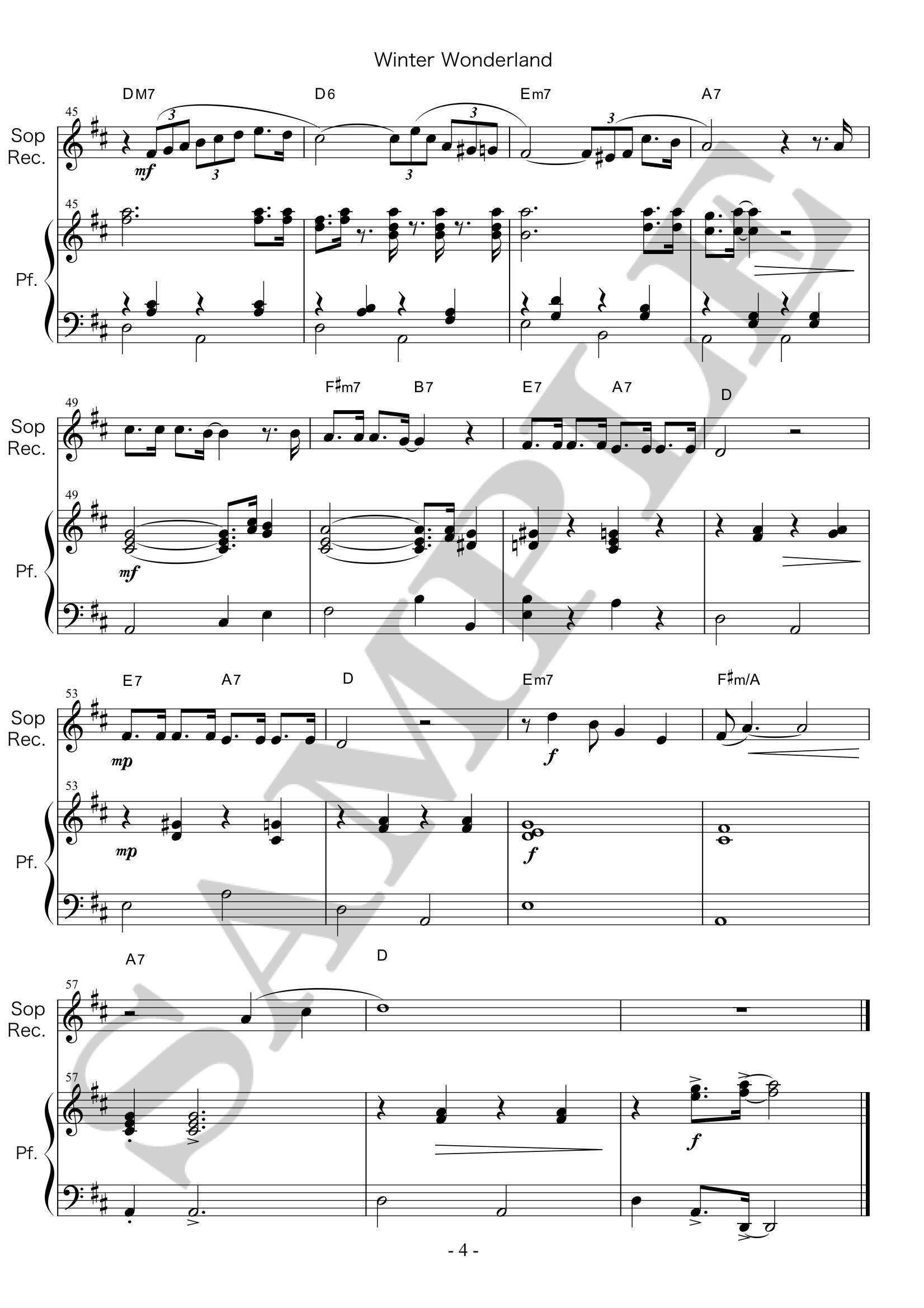 クリスマスソングWinter Wonderlandのソプラノリコーダー譜です。