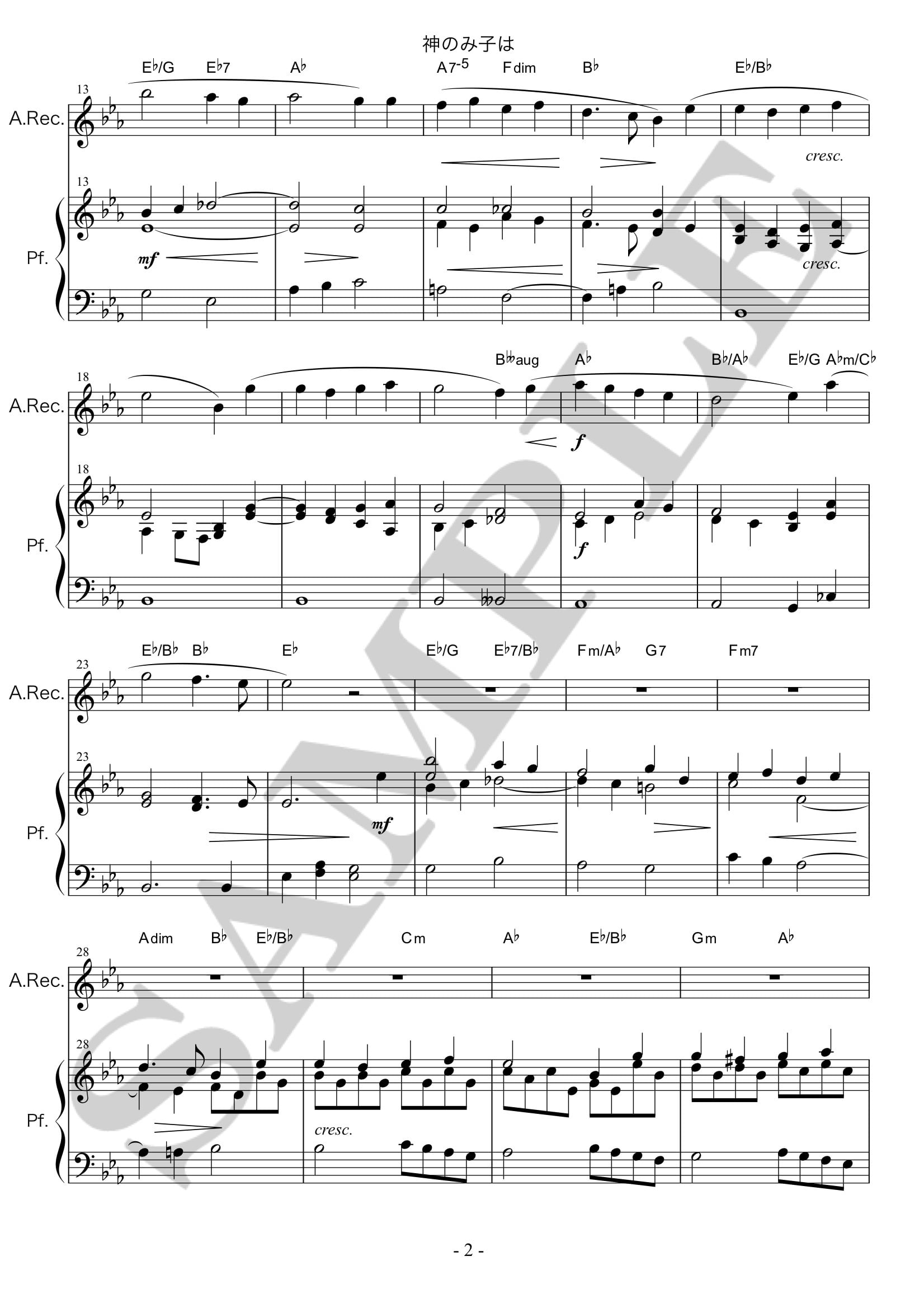 クリスマスソング神のみ子はのアルトリコーダー譜です。