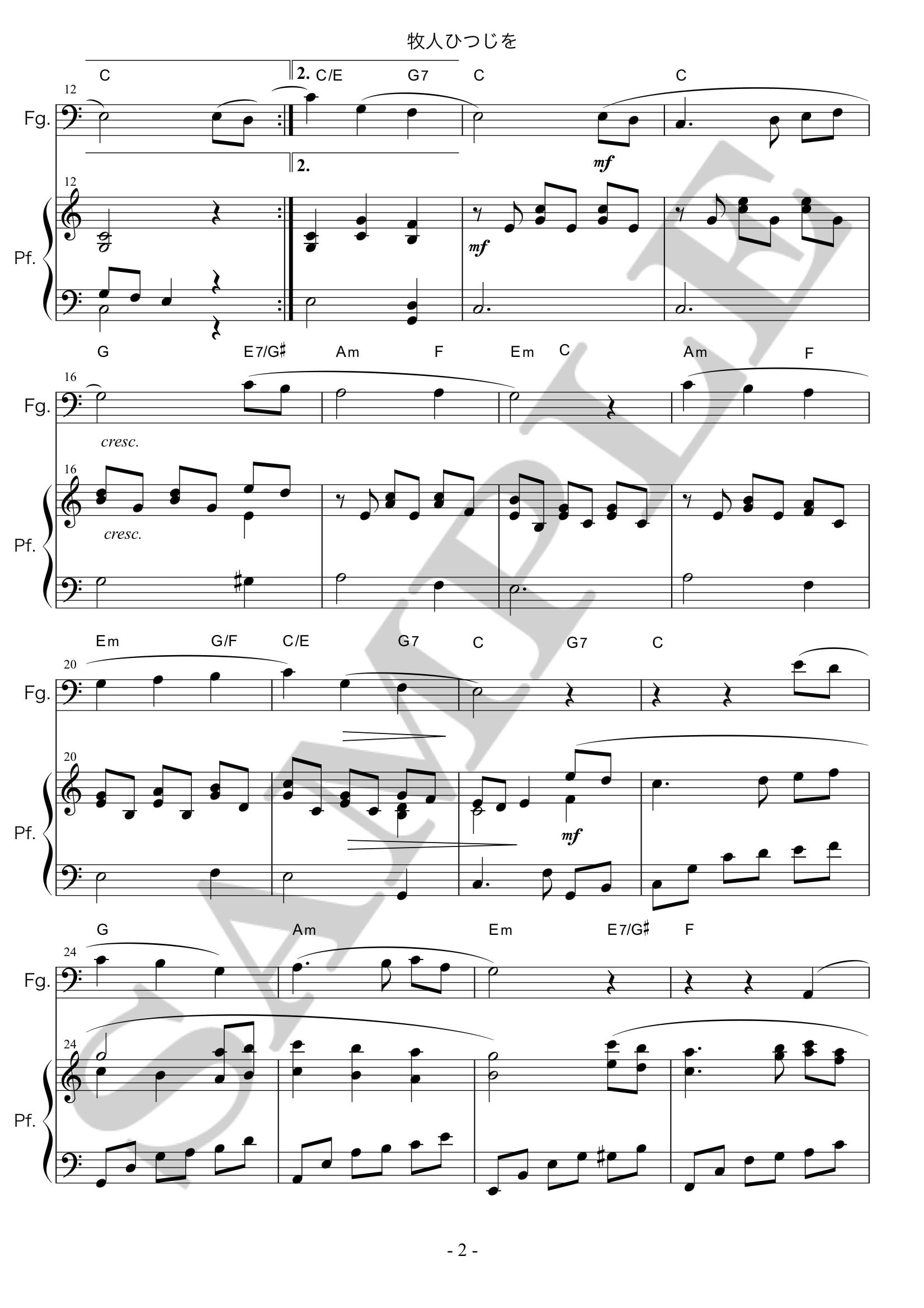 クリスマスソング牧人ひつじをのファゴット譜です。