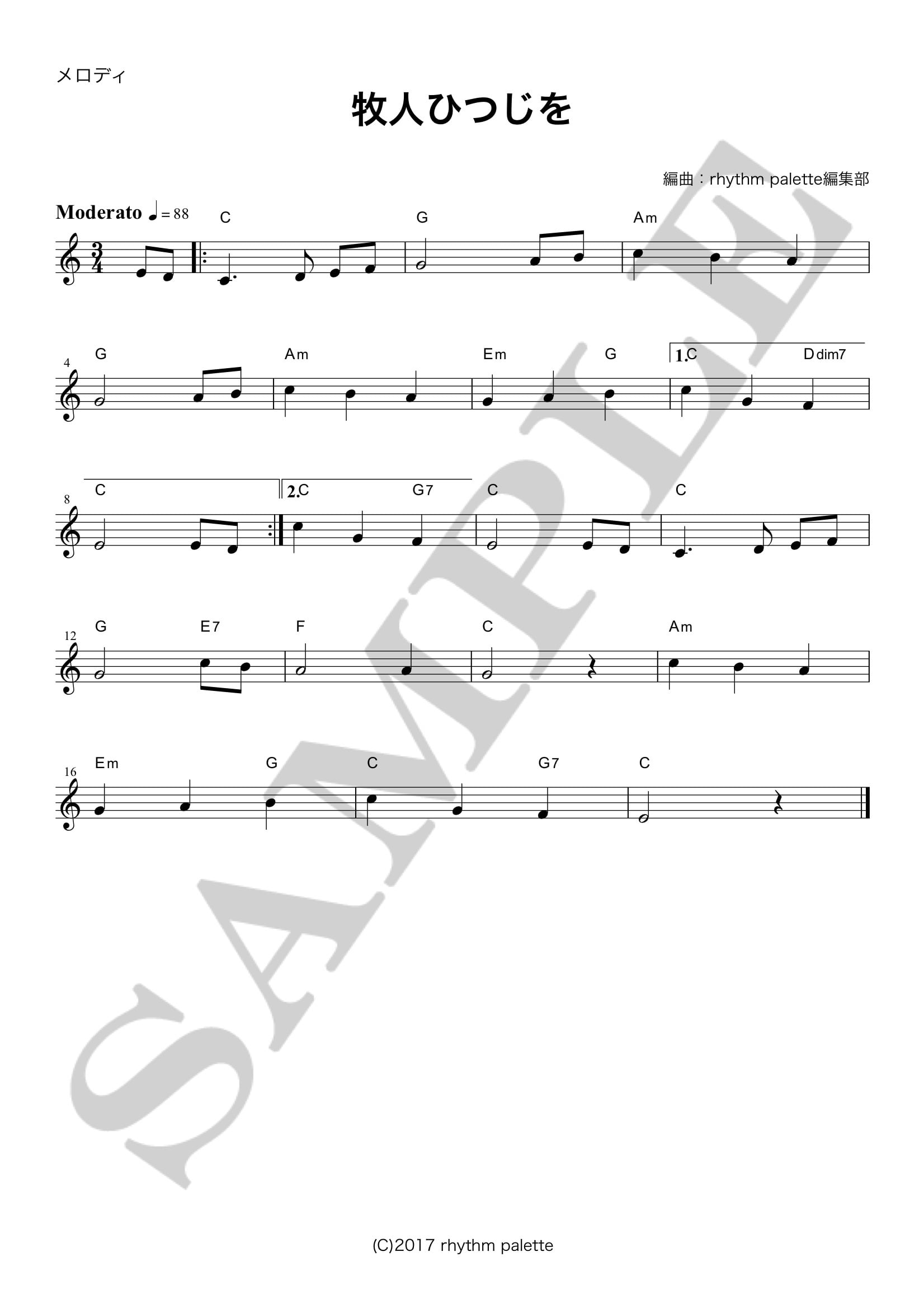 クリスマスソング牧人ひつじをのメロディ譜です。